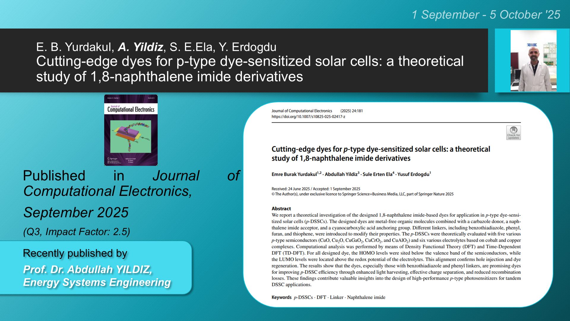 Silicon, Sayfalar 1-11 Cutting-edge dyes for p-type dye-sensitized solar cells: a theoretical study of 1,8-naphthalene imide derivatives Emre Burak Yurdakul and Abdullah Yildiz and Sule Erten Ela and Yusuf Erdogdu
