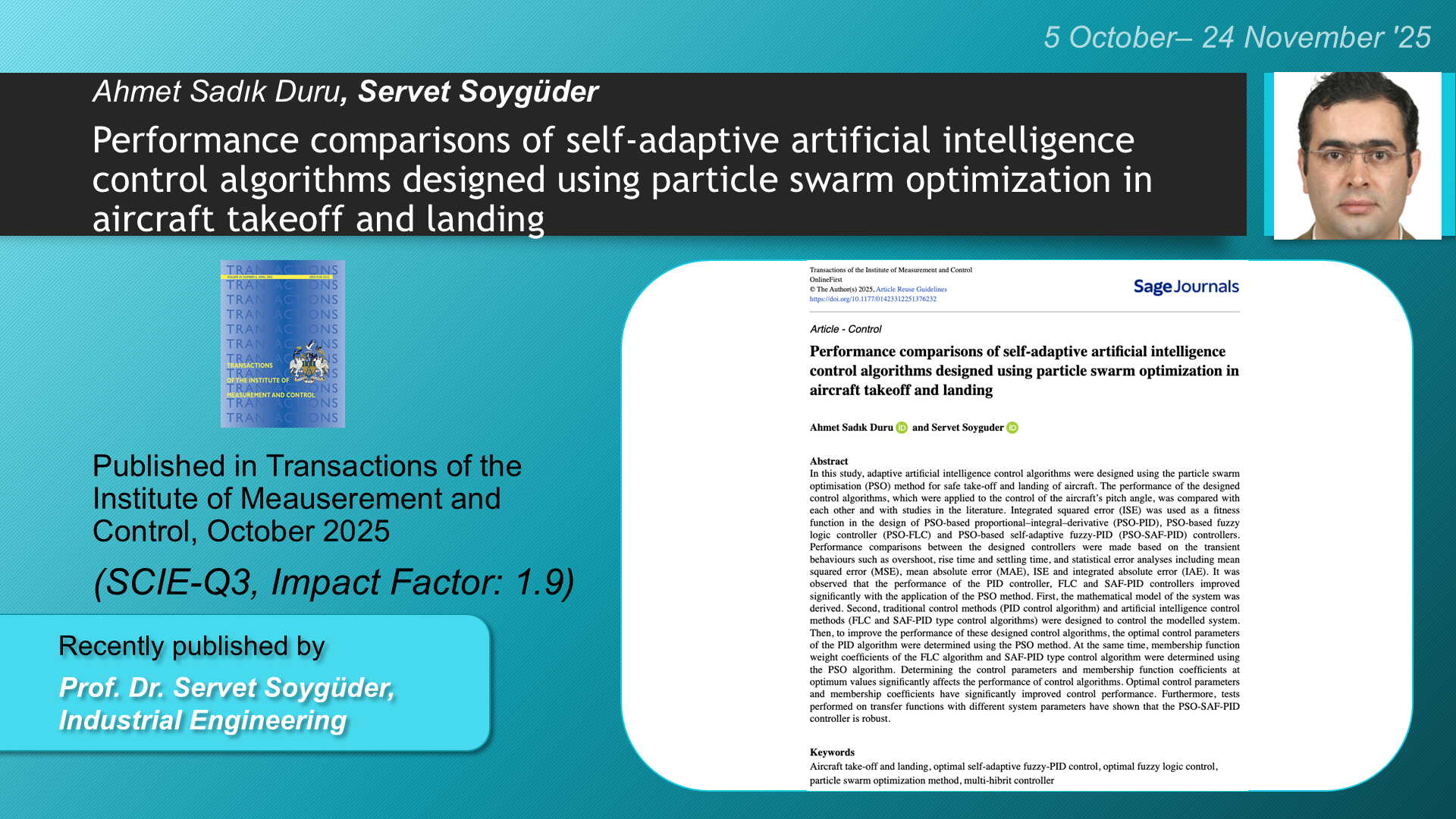Journal of Turkish Operations Management, Cilt 9, Sayı 1, Sayfalar 181 - 199 Performance comparisons of self-adaptive artificial intelligence control algorithms designed using particle swarm optimization in aircraft takeoff and landing Ahmet Sadık Duru and Servet Soyguder