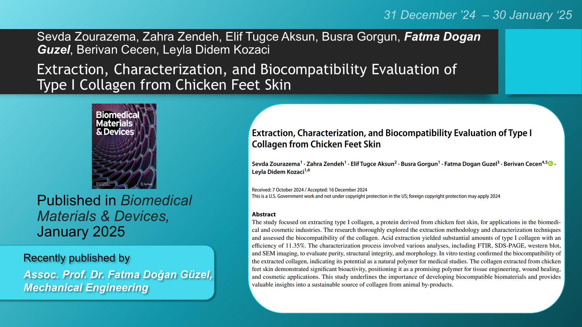 ACS Applied Polymer Materials Extraction, Characterization, and Biocompatibility Evaluation of Type I Collagen from Chicken Feet Skin Berivan Cecen & Leyla Didem Kozaci Sevda Zourazema and Zahra Zendeh and Elif Tugce Aksun and Busra Gorgun and Fatma Dogan Guzel