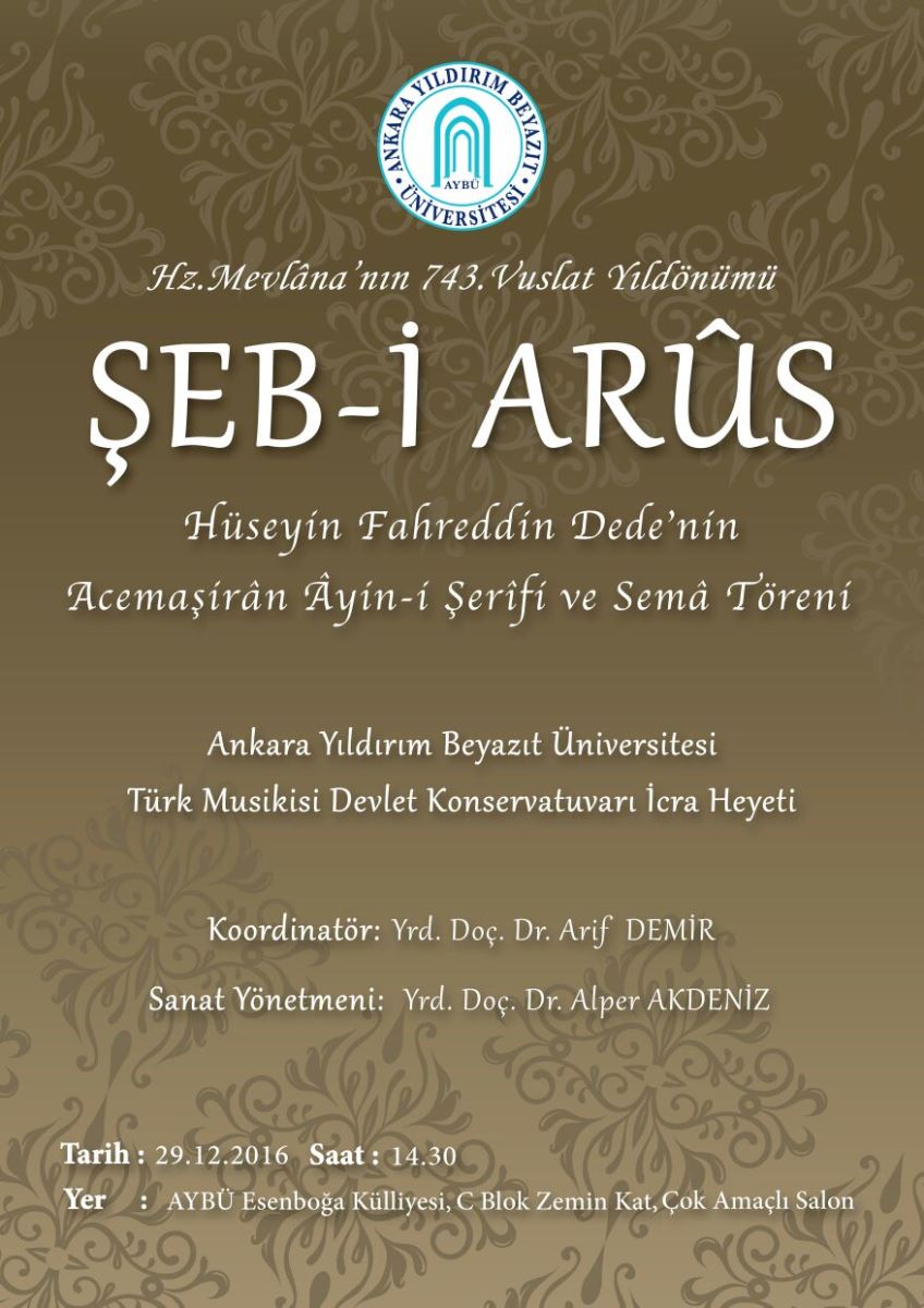 HZ. MEVLÂNA'NIN 743. VUSLAT YILDÖNÜMÜ ŞEB-İ ARÛS - HÜSEYİN FAHREDDİN DEDE'NİN ACEMAŞİRÂN ÂYİN-İ ŞERÎFİ VE SEMA TÖRENİ