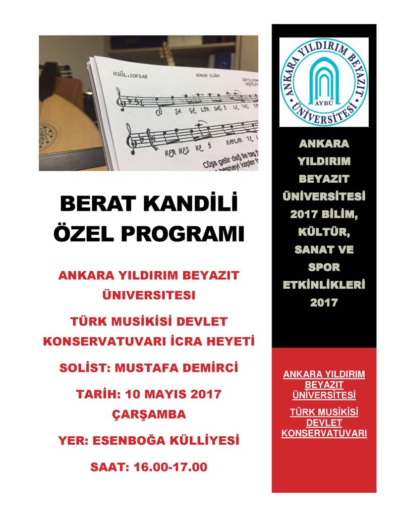 10.05.2017 BERAT KANDİLİ ÖZEL PROGRAMI - AYBÜ TÜRK MUSİKİSİ DEVLET KONSERVATUVARI İCRA HEYETİ & SOLİST: MUSTAFA DEMİRCİ