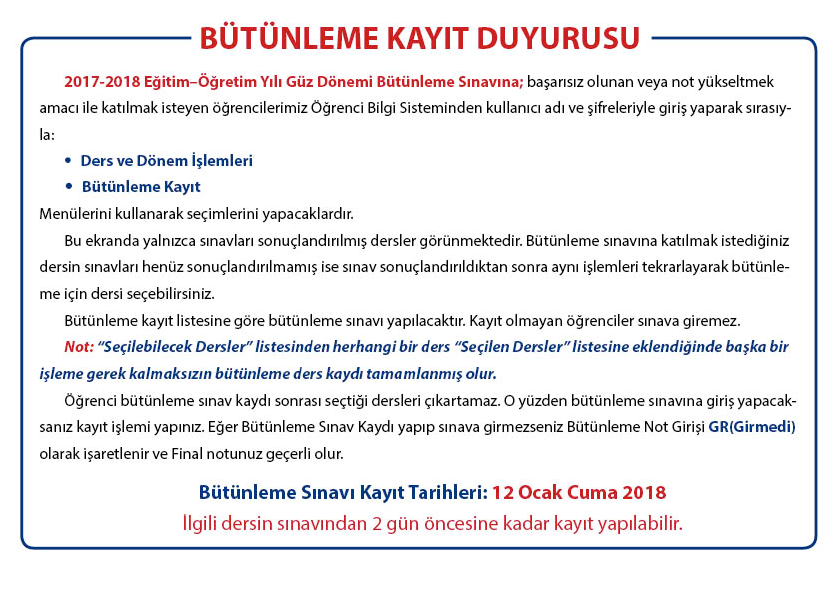 2017-2018 GÜZ BÜTÜNLEME SINAVLARI HAKKINDA ÖNEMLİ DUYURU!