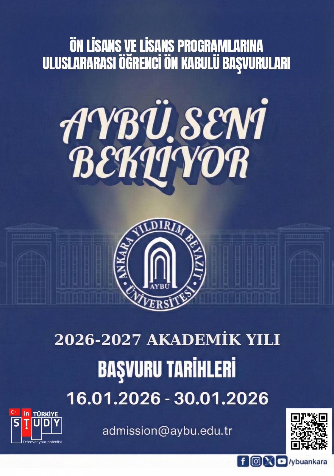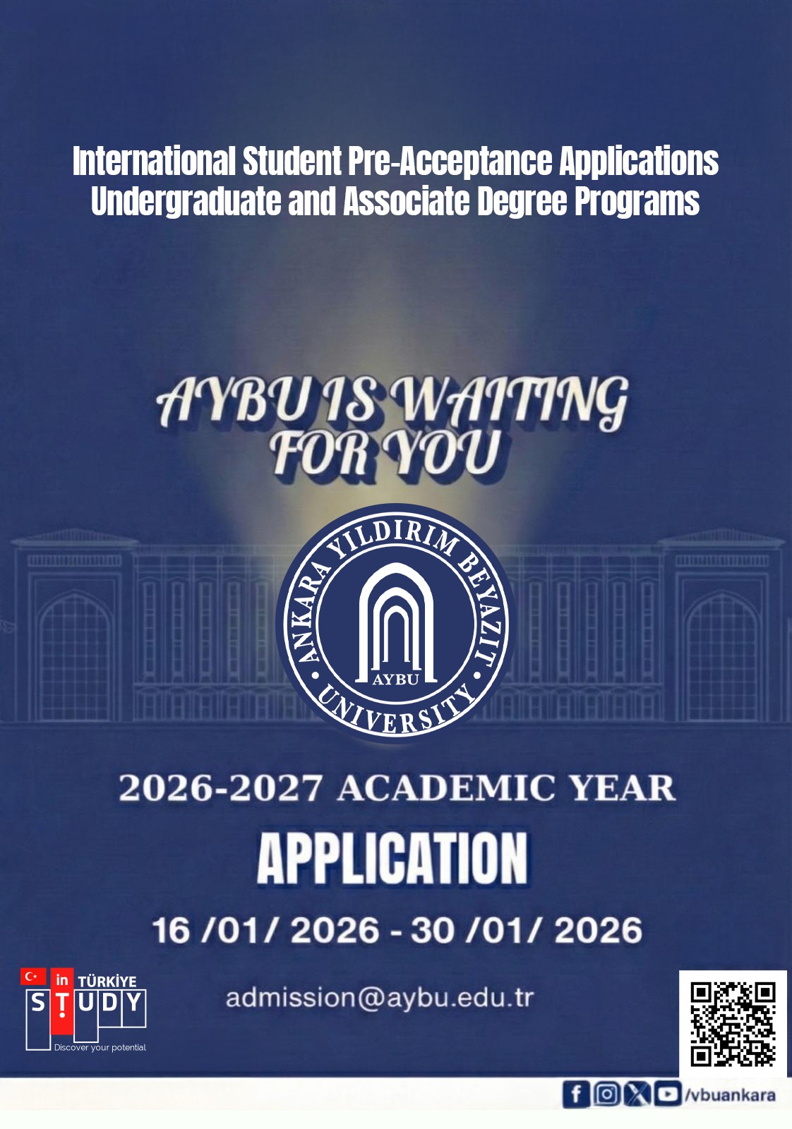 Announcement on AYBU 2026-2027 Academic Year Associate and Undergraduate Pre-Acceptance Application for International Students/ AYBÜ 2026-2027 Akademik Yılı Önlisans ve Lisans Programlarına Uluslararası Öğrenci Ön Kabul Başvuru Duyurusu
