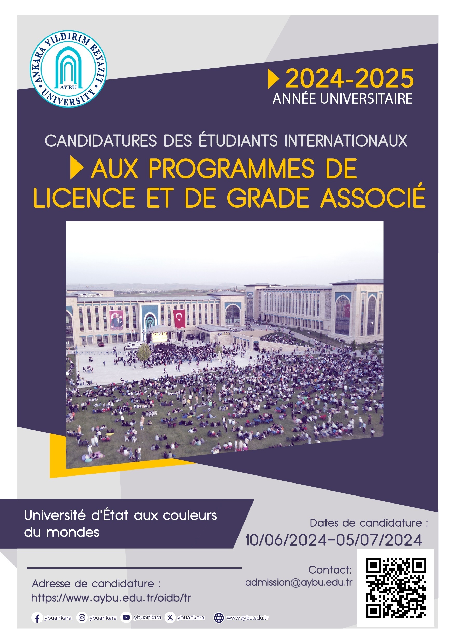 AYBU 2024-2025 Academic Year International Student Applications to Associate and Undergraduate Degree Programs started on June 10, 2024. Read the documents titled “International Students Admission Guide” and “Guide to Fill in Online Application Form for International Students” before starting your application. Any technical problems or general inquiries should be directed to admission@aybu.edu.tr.