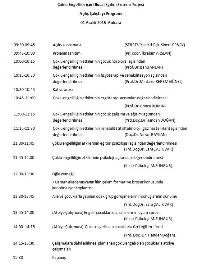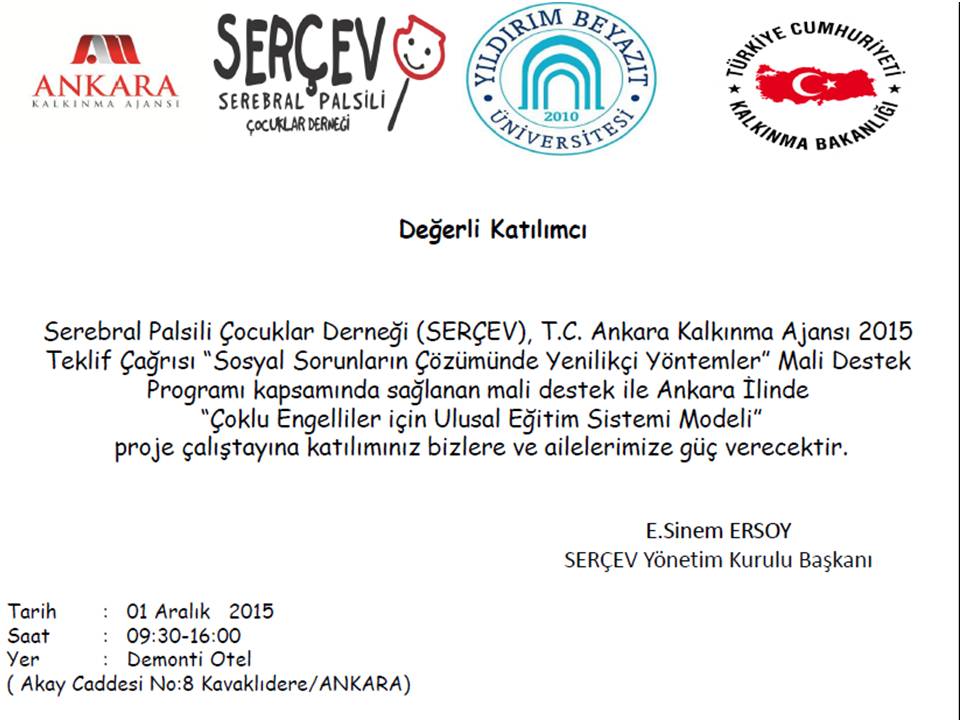 Çalıştay Daveti 'Çoklu Engelliler için Ulusal Eğitim Sistemi Modeli'