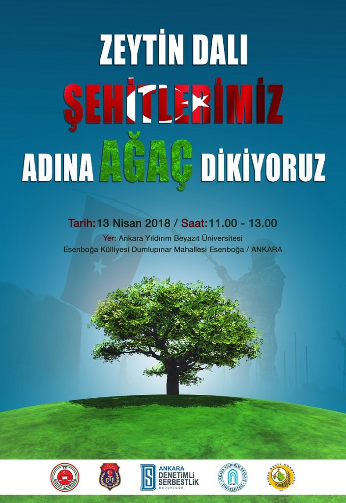 13.04.2018 Cuma günü saat 11:00-13:00 arasında Zeytindalı Şehitleri Hatıra Ormanı için Ağaç Dikimi Etkinliği gerçekleştirilecektir. Bu Hatıra Ormanında Psikoloji Bölümümüz için de bir koru oluşturulacaktır. Tüm psikoloji bölümü öğrencilerimizin katılımını bekliyoruz. Saat 10:50'de İç Bahçe A blok kapısında buluşulup dikim alanına gidilecektir.