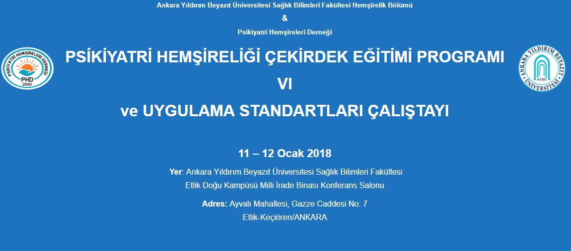 "PSİKİYATRİ HEMŞİRELİĞİ ÇEKİRDEK EĞİTİMİ PROGRAMI  VI ve UYGULAMA  STANDARTLARI ÇALIŞTAYI" düzenlenecektir.