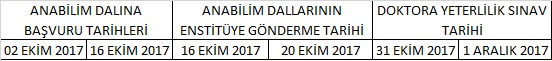1. Doktora yeterlilik BAŞVURUSU ANABİLİM DALLARINA 02 EKİM 2017 16 EKİM 2017 tarihlerinde yapılacaktır.