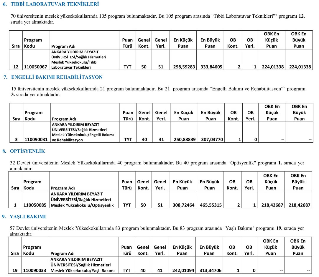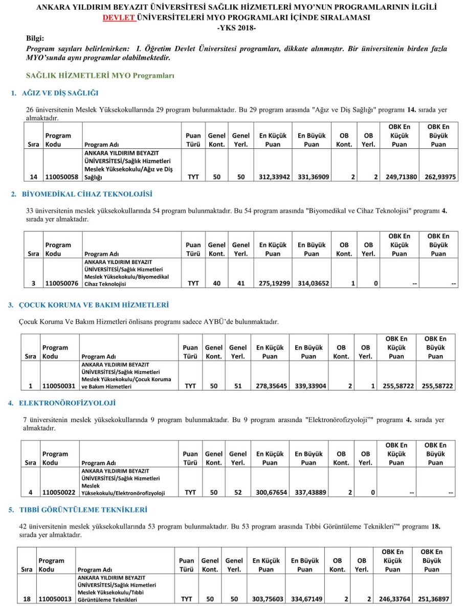 YKS 2018 Yerleştirmelerine Göre SHMYO Bölümlerimizin Sıralaması