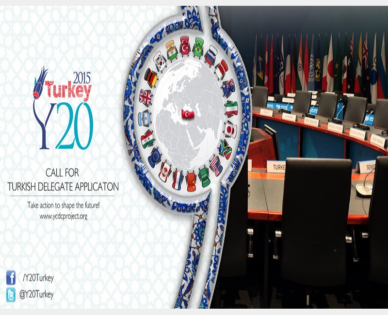 Ülkemizin 1 Aralık 2014 tarihinde devraldığı G20 Dönem Başkanlığı kapsamında ülkemizde G20'nin gençlik ile ilgili alınacak kararlarına tavsiye niteliğinde görüş bildirilmesi amacıyla Y20 Turkey 2015 (Youth 20) toplantıları düzenlenecektir. Her ülkeyi temsilen genç delegasyon üyelerinin katılımı ile gerçekleştirilecek olan toplantılarda ülkemiz de bir delegasyon ile temsil edilecektir. Ülkemizi temsilen toplantılara katılacak delegasyon üyelerinin seçilmesi için www.ycdcproject.org internet sayfası üzerinden başvurular gerçekleşecektir.