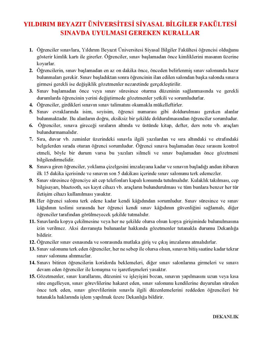 SINAV KURALLARI