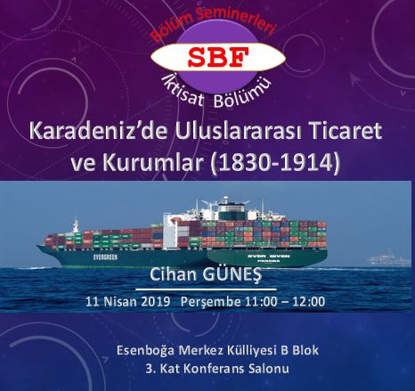 İktisat Bölümünün organize ettiği ve Araştırma Görevlisi Cihan GÜNEŞ tarafından sunulacak "Karadeniz’de Uluslararası Ticaret ve Kurumlar (1830-1914)" başlıklı seminerimize hepiniz davetlisiniz.