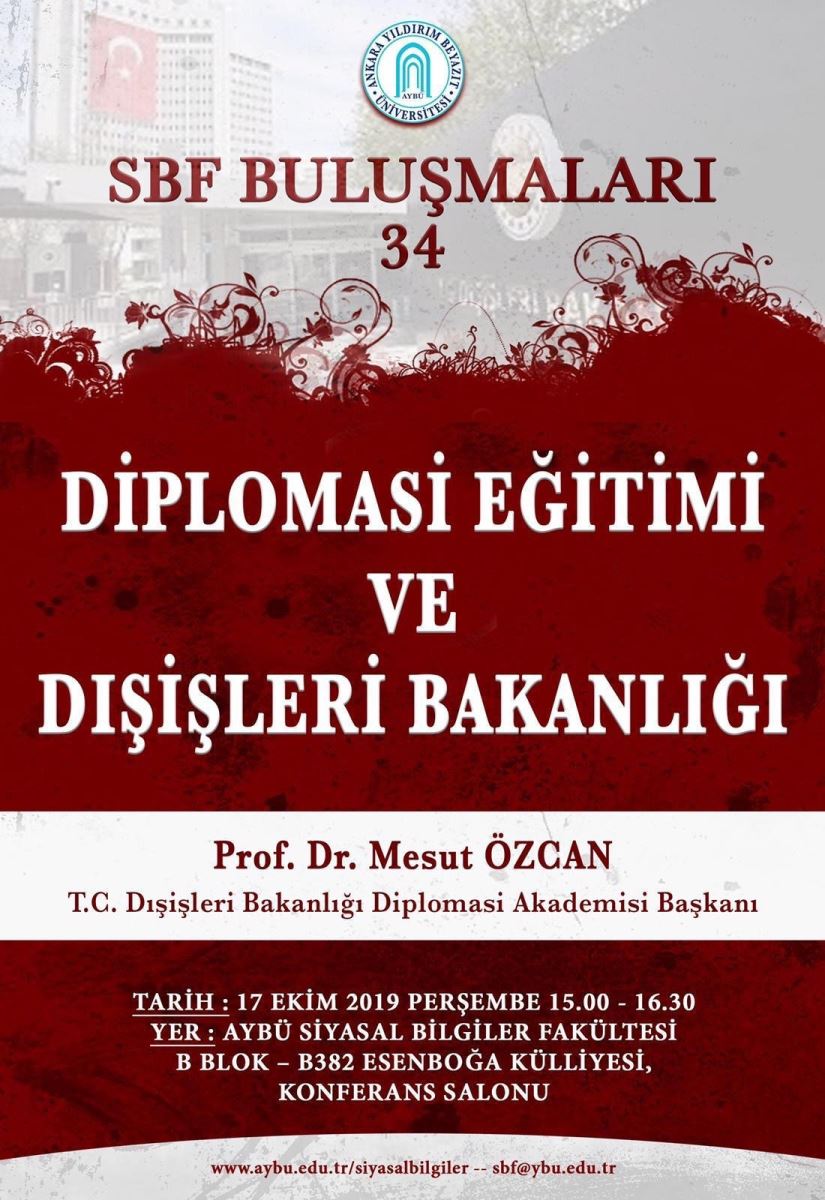 34. SBF buluşmalarında T.C. Dışişleri Bakanlığı Diplomasi Akademisi Başkanı Prof. Dr. Mesut ÖZCAN'ın katılımları ile “Diplomasi Eğitimi ve Dışişleri Bakanlığı”  programına hepiniz davetlisiniz.