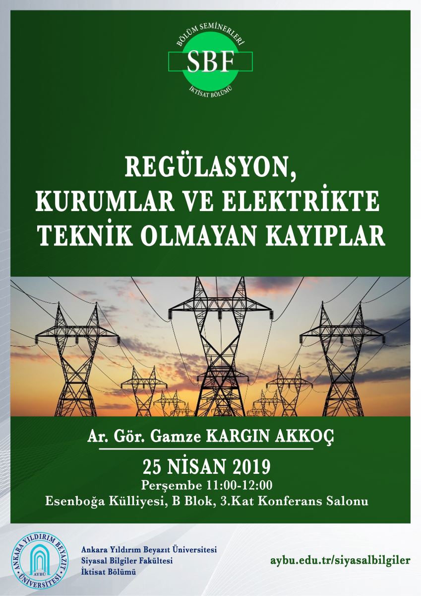 9. SBF Bölüm Seminerleri İktisat Bölümünün organize ettiği ve Ar. Gör. Gamze KARGIN AKKOÇ tarafından sunulan "Regülasyon, Kurumlar ve Elektrikte Teknik Olmayan Kayıplar" başlıklı seminerimiz gerçekleşmiştir.