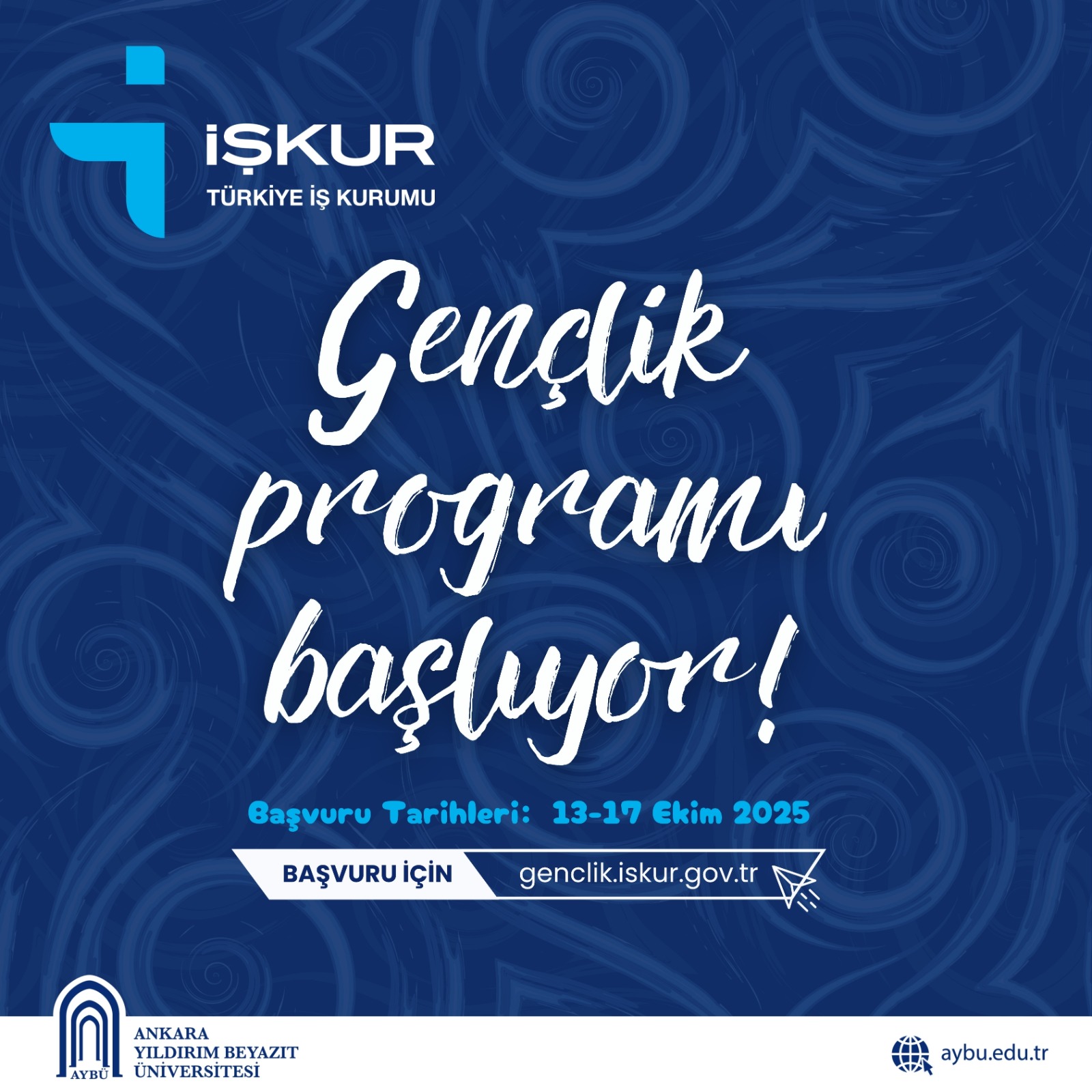 Başvurular 13-17 Ekim 2025 tarihleri arasında genclik.iskur.gov.tr adresinden yapılacaktır. Ayrıca İŞKUR Gençlik Platformu, İŞKUR Mobil Uygulaması veya ALO 170 İletişim Hattı üzerinden de başvuru işlemleri gerçekleştirilebilecek. Kura çekimi noter eşliğinde olup tarih, saat ve adres bilgisi AYBÜ duyuru sayfasında paylaşılacaktır.