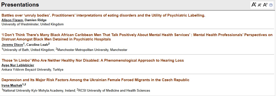 Bölümümüzün öğretim elemanlarından Ayşe Nur Leblebicier, 27-30 Ağustos, Porto'da gerçekleşen 16. European Sociological Association (ESA) Konferansı'nda, "Politikalar, teknolojiler ve (yeni) eşitsizliklerin kesiştiği noktada engellilik ve ruh sağlığı" (Disability and mental health at the intersection of policies, technologies and (new) inequalities) başlıklı oturumda, "Those 'In Limbo' Who Are Neither Healthy Nor Disabled: A Phenomenological Approach to Hearing Loss" başlıklı bildirisini sundu.