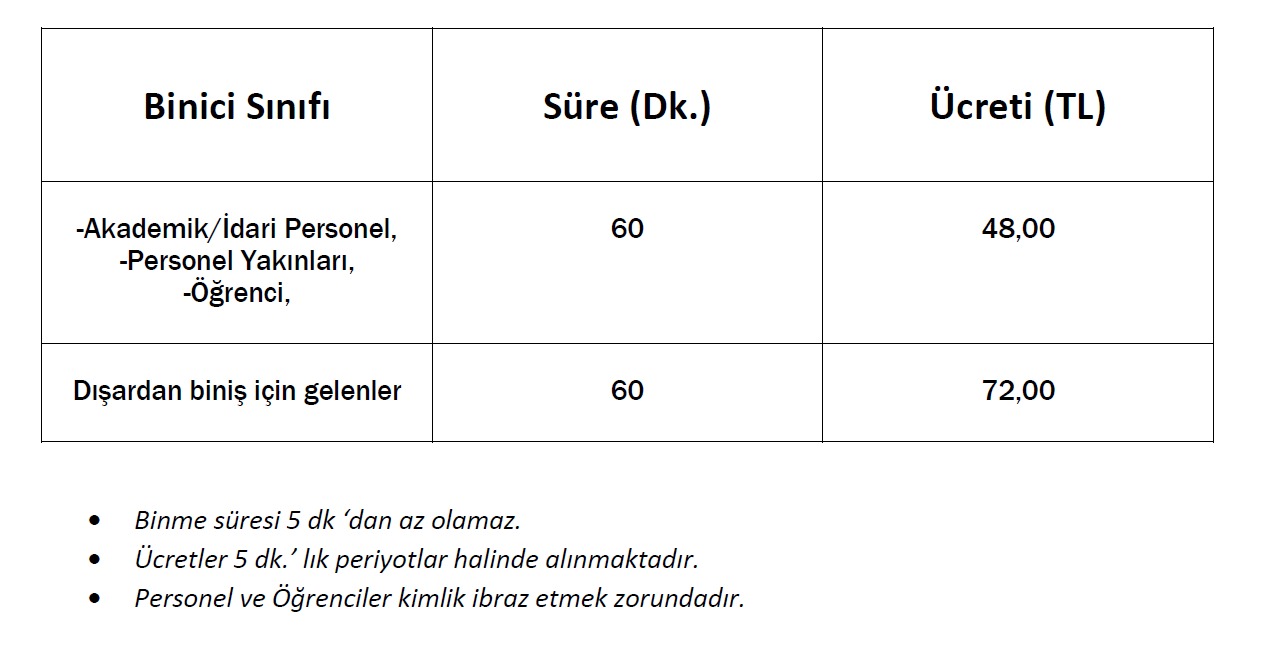 Biniş Saatleri: 13:00 - 16:00 arasındadır.
