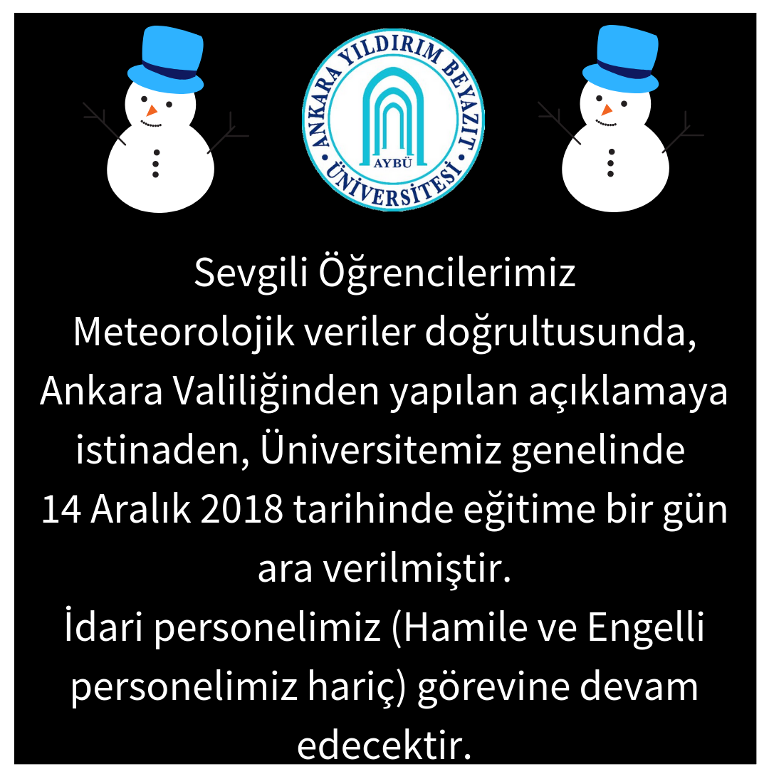KAR YAĞIŞI NEDENİYLE 14 ARALIK 2018 TARİHİNDE EĞİTİME ARA VERİLMİŞTİR
