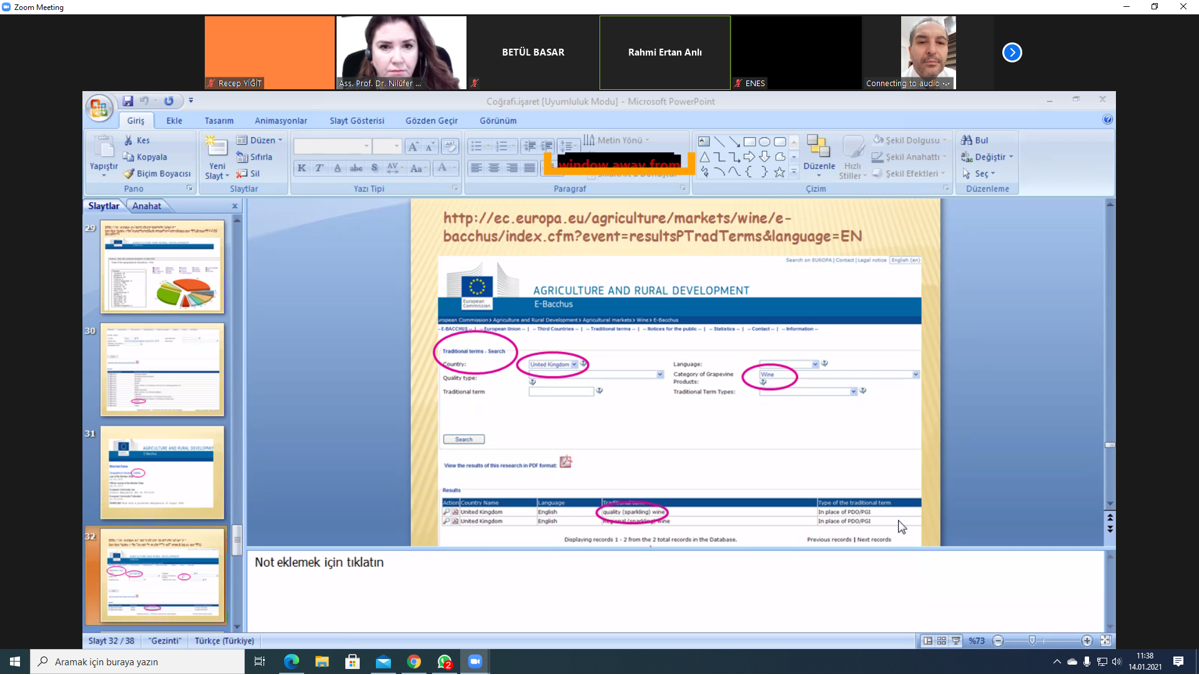Ankara Yıldırım Beyazıt Üniversitesi MYO seminerleri kapsamında Gıda İşleme Bölümümüz tarafından 14.01.2021 tarihinde saat 11:00' de öğrenci ve öğretim üyelerimizin katılımı ile "Coğrafi İşaret ve Gıdalar Açısından Önemi" konu başlıklı bir seminer yapıldı.