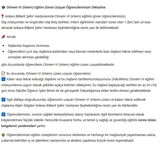 INTERN SÜRESİ UZAYANLAR İÇİN DUYURU