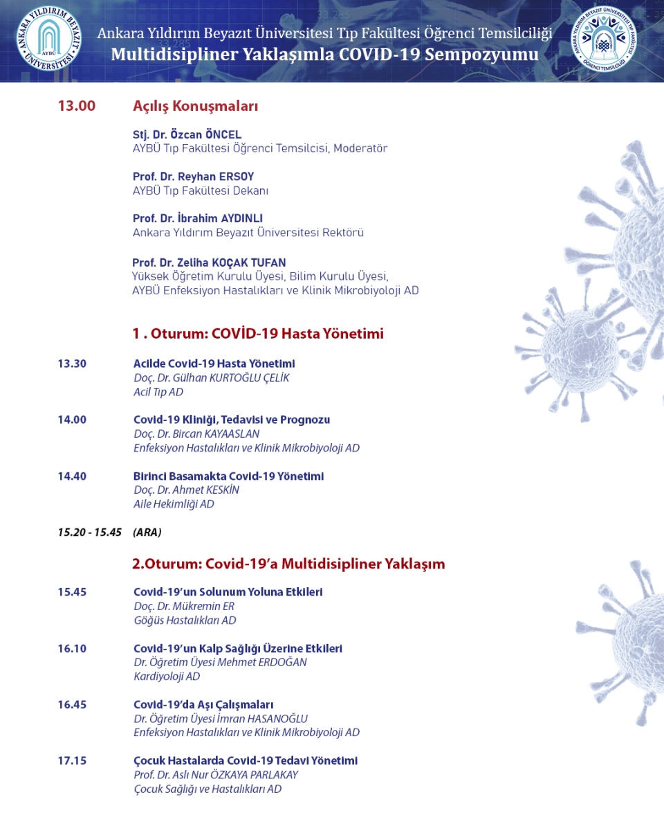 AYBÜ Tıp Fakültesi Öğrenci Temsilciliği tarafından Multidisipliner Yaklaşımla COVID-19 Sempozyumu yapılacaktır. (15-12-2020)