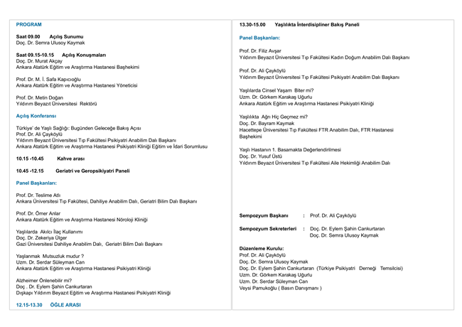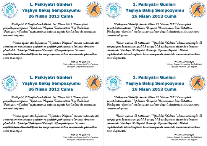 1. Psikiyatri Günleri - Yaşlıya Bakış Sempozyumu