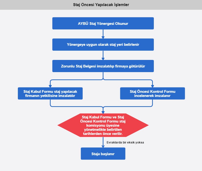 Staj Öncesi Yapılacak İşlemler İçin - For Pre-Intership