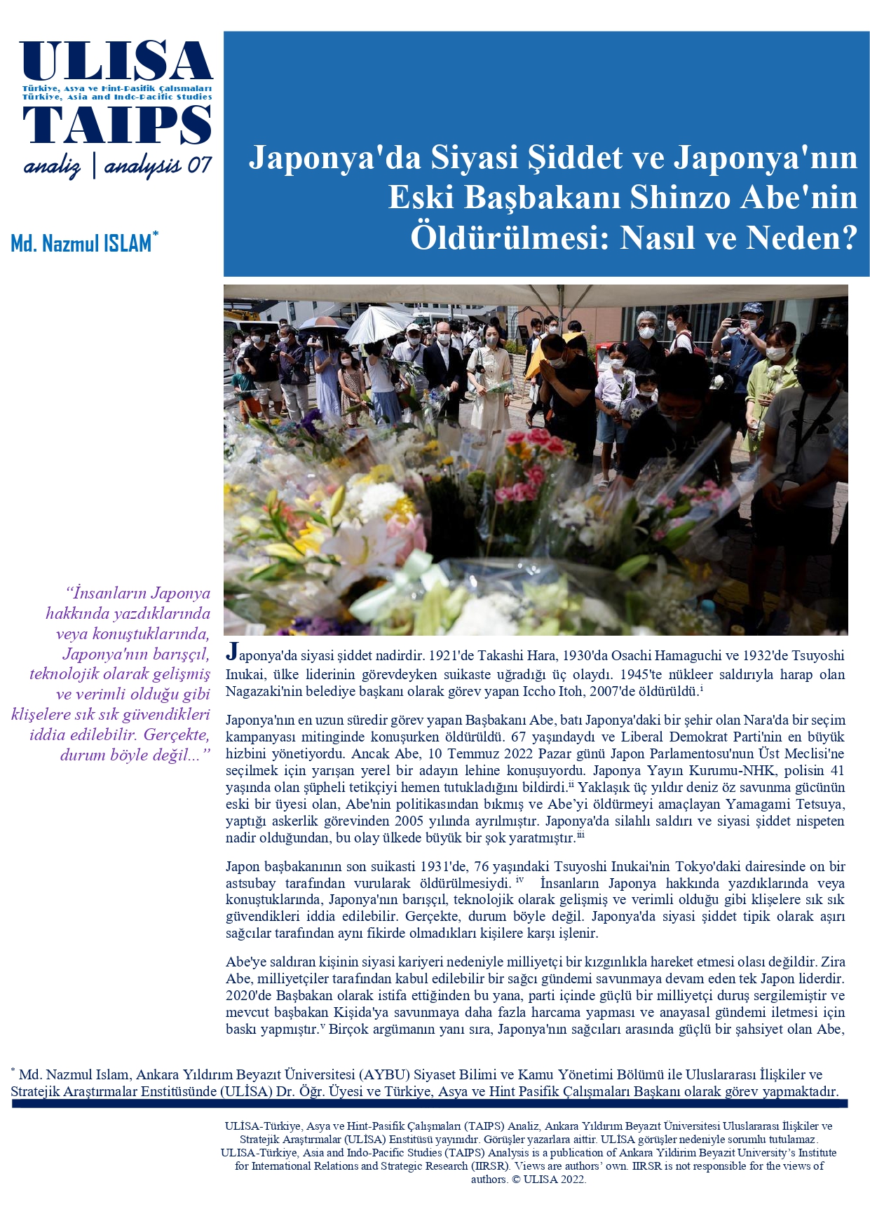 Japonya'da Siyasi Şiddet ve Japonya'nın Eski Başbakanı Shinzo Abe'nin Öldürülmesi: Nasıl ve Neden?