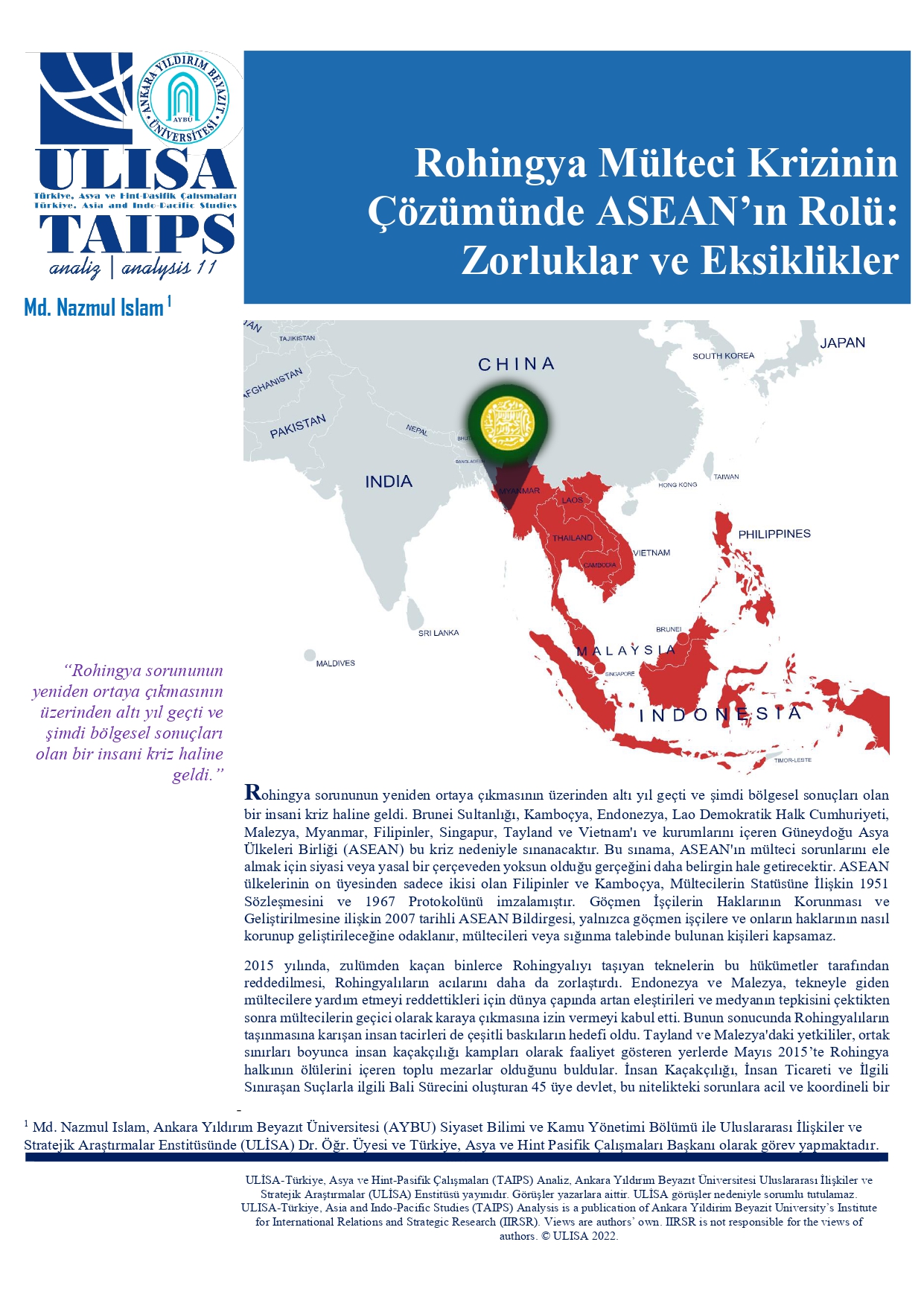 Rohingya Mülteci Krizinin Çözümünde ASEAN’ın Rolü-Zorluklar ve Eksiklikler