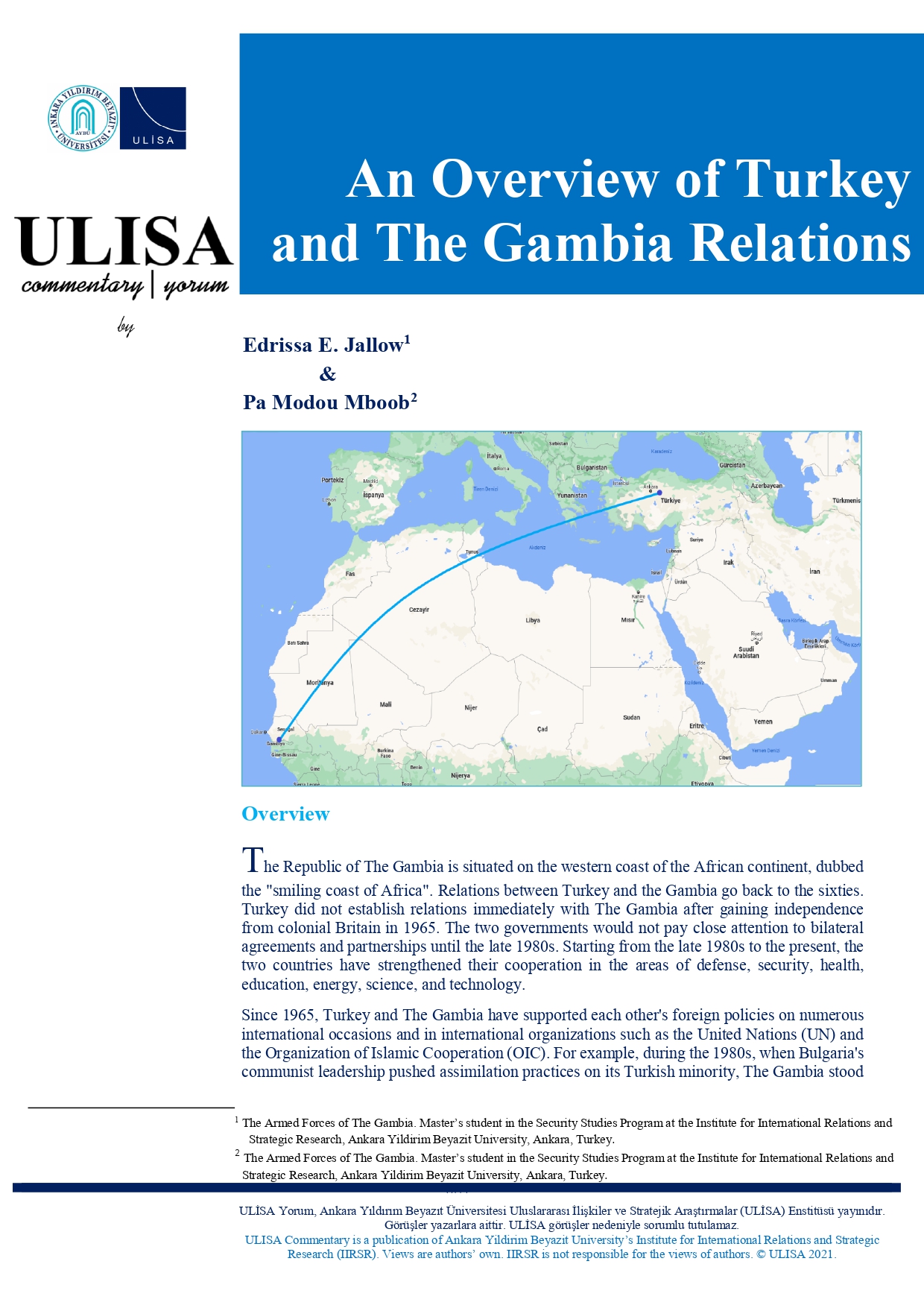 Güvenlik Çalışmaları (İngilizce) Yüksek Lisans Programı öğrencilerimizden Edrissa E. Jallow ve Pa Modou Mboob, Türkiye-Gambiya ilişkilerini yorumladı.