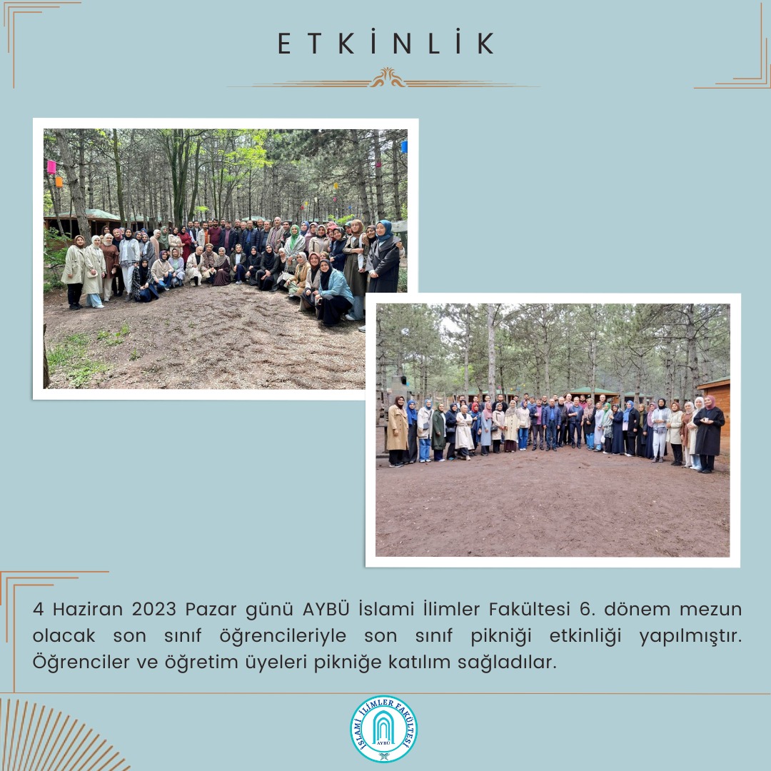AYBÜ İslami İlimler Fakültesi 6. dönem mezun olacak son sınıf öğrencileriyle son sınıf pikniği etkinliği yapılmıştır.