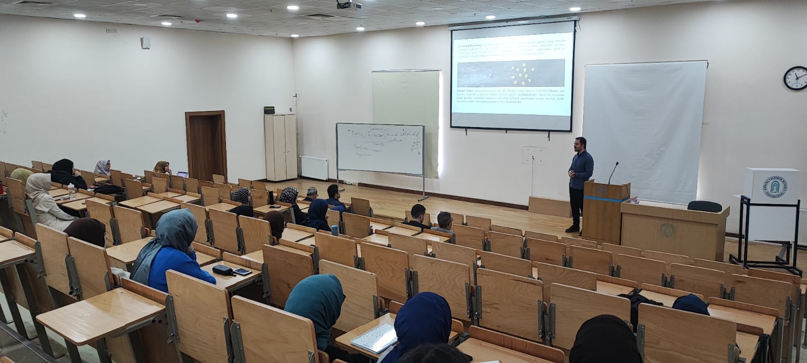 AYBÜ İlahiyat Fakülte Seminerleri kapsamında, 2 Ekim Çarşamba günü fakültemiz öğretim elemanı Dr. Mehmet Emin Sarıkaya, fakülte öğrencileri ve öğretim üyelerinin katılımıyla "Gruplararası İlişkiler Bağlamında Sosyal Kimlik ve Din" konulu sunumunu gerçekleştirdi.