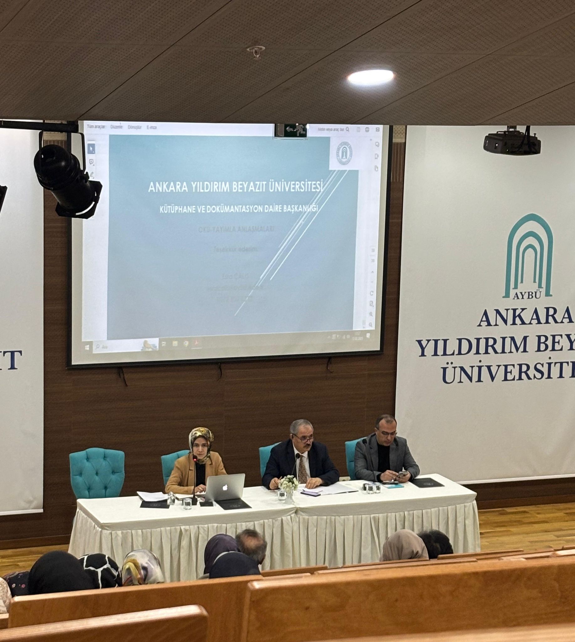 Toplantıda Üniversitemiz Kütüphane ve Dokümantasyon Daire Başkanlığı kütüphanecilerinden Esra ÇALIŞ tarafından, 2025 yılı için aboneliği yapılan veri tabanlarının daha etkin olarak kullanılabilmesi amacıyla bir sunum gerçekleştirildi. Sunumda Oxford University Press ve Cambridge University Press yayınevlerine gerçekleştirilen abonelikler kapsamında araştırmacıların hem tam metin içeriğe erişim sağlayabilme hem de “Oku ve Yayımla” anlaşması kapsamında Makale İşlem Bedeli (Article Processing Charge: APC) ödemeksizin makalelerini açık erişim olarak yayımlayabilmelerine yönelik bir bilgilendirme yapıldı.