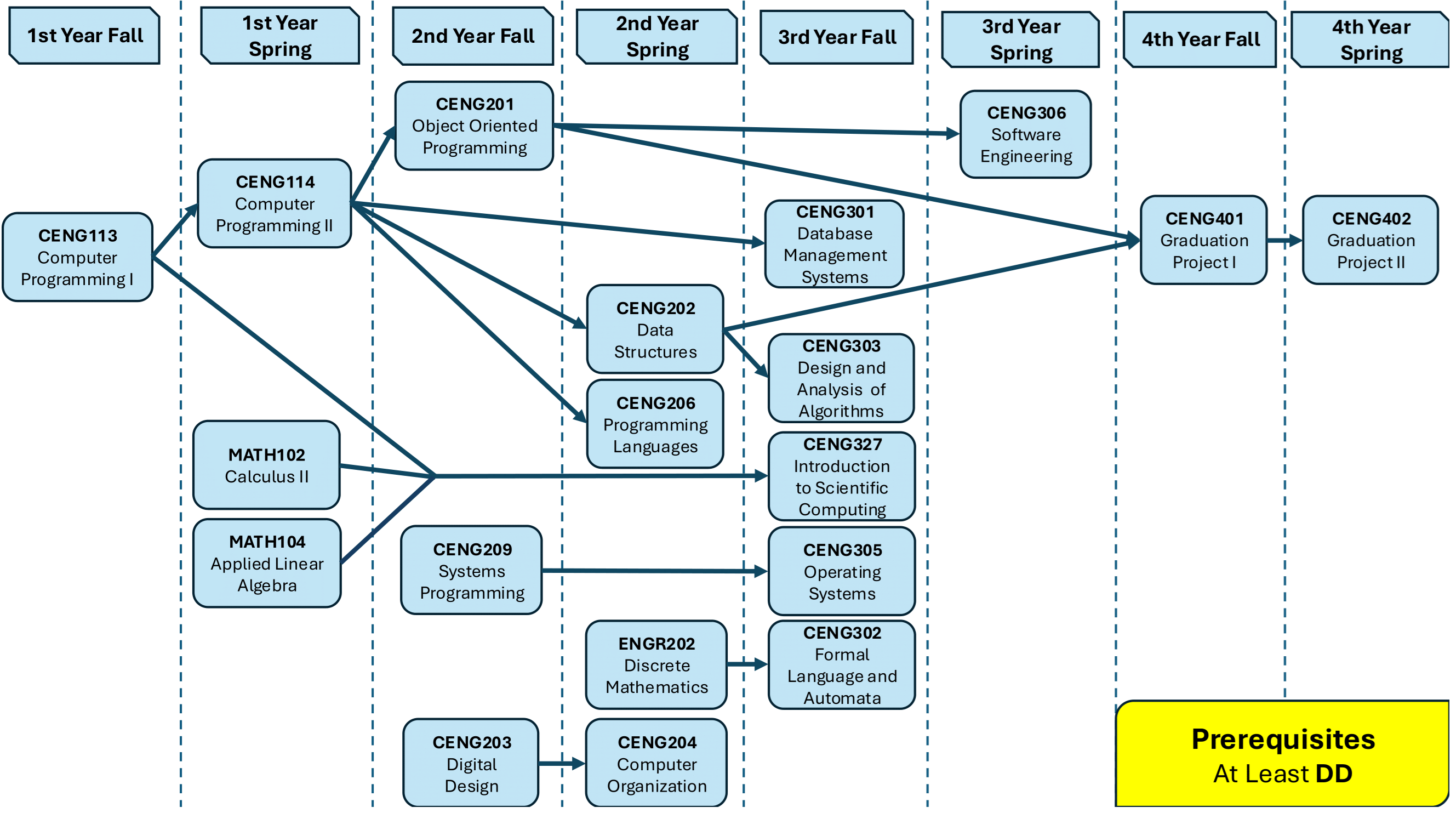 | CENG401 | GRADUATION PROJECT I | Must | 6 | CENG201 (DD) and CENG202 (DD) |
