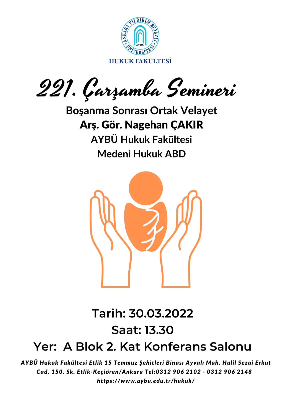 In 221. Wednesday Seminar, a presentation titled as “Joint Custody after Divorce” will be given by Research Assistant Nagehan Çakır.