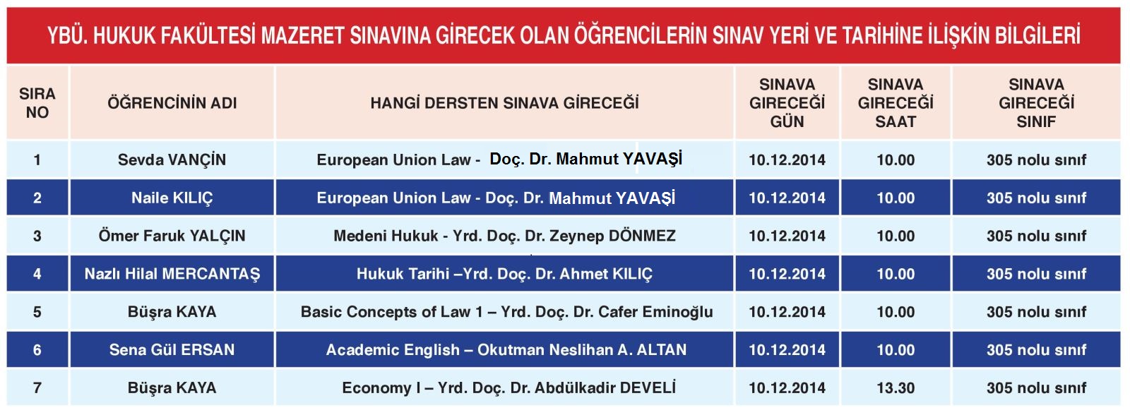 MAZERET SINAVINA GİRECEK ÖĞRENCİLERİN SINAV TARİHLERİ VE SINAV SAATLERİ