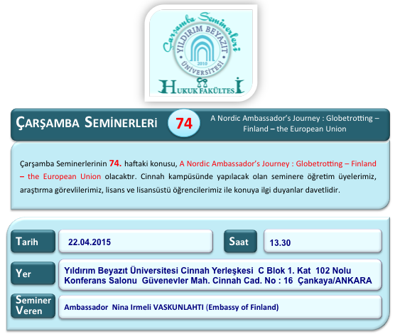 YBU Hukuk Fakültesi Çarşamba Semineri 74 - A Nordic Ambassador’s Journey : Globetrotting – Finland – the European Union