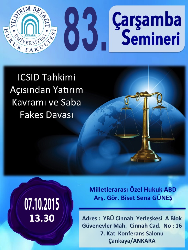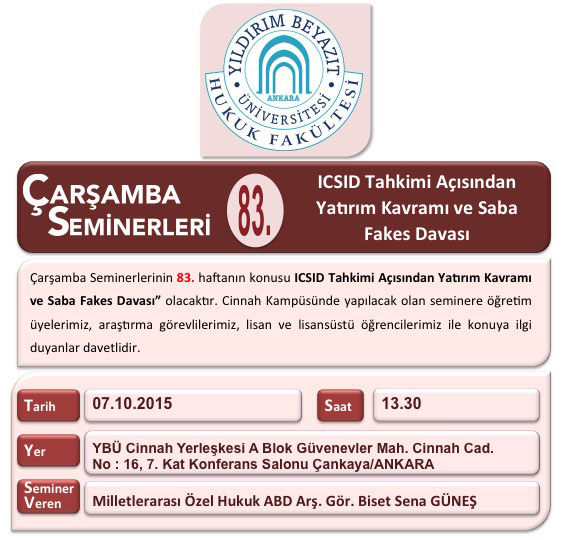 YBÜ Hukuk Fakültesi Çarşamba Semineri 83–IICSID Tahkimi Açısından Yatırım Kavramı ve Saba Fakes Davası