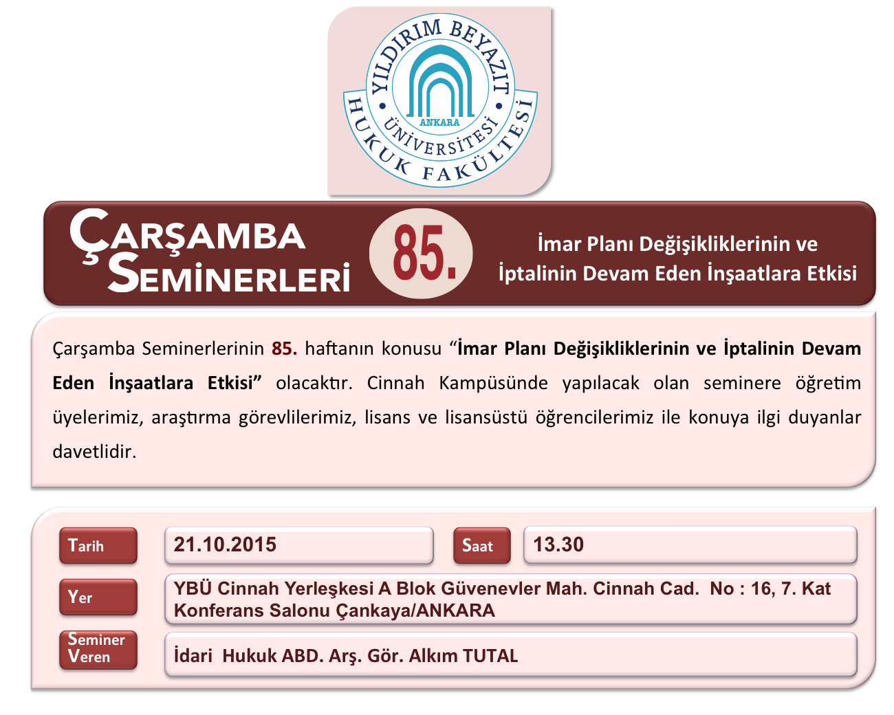 YBÜ Hukuk Fakültesi Çarşamba Semineri 85-İmar Planı Değişikliklerinin ve İptalinin Devam Eden İnşaatlara Etkisi