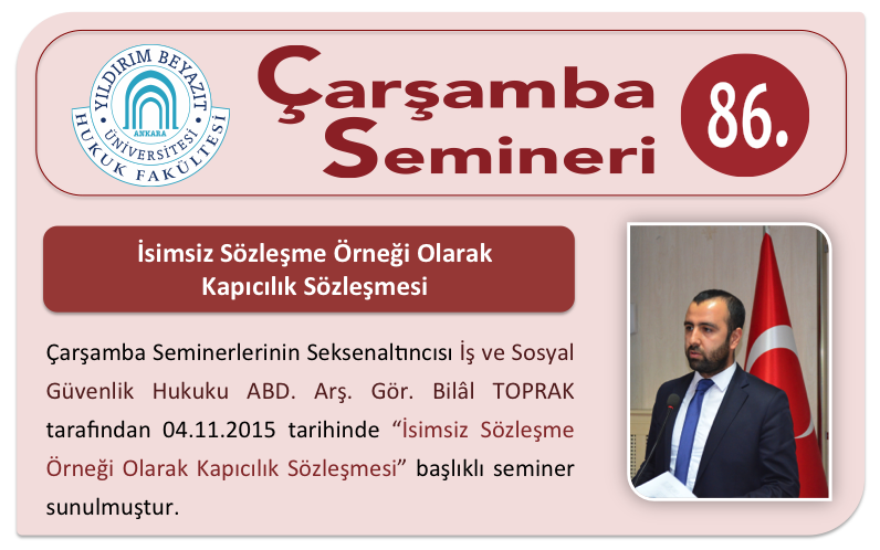 YBÜ Hukuk Fakültesi Çarşamba Semineri 86-İsimsiz Sözleşme Örneği Olarak Kapıcılık Sözleşmesi Adlı Seminer Sunulmuştur.