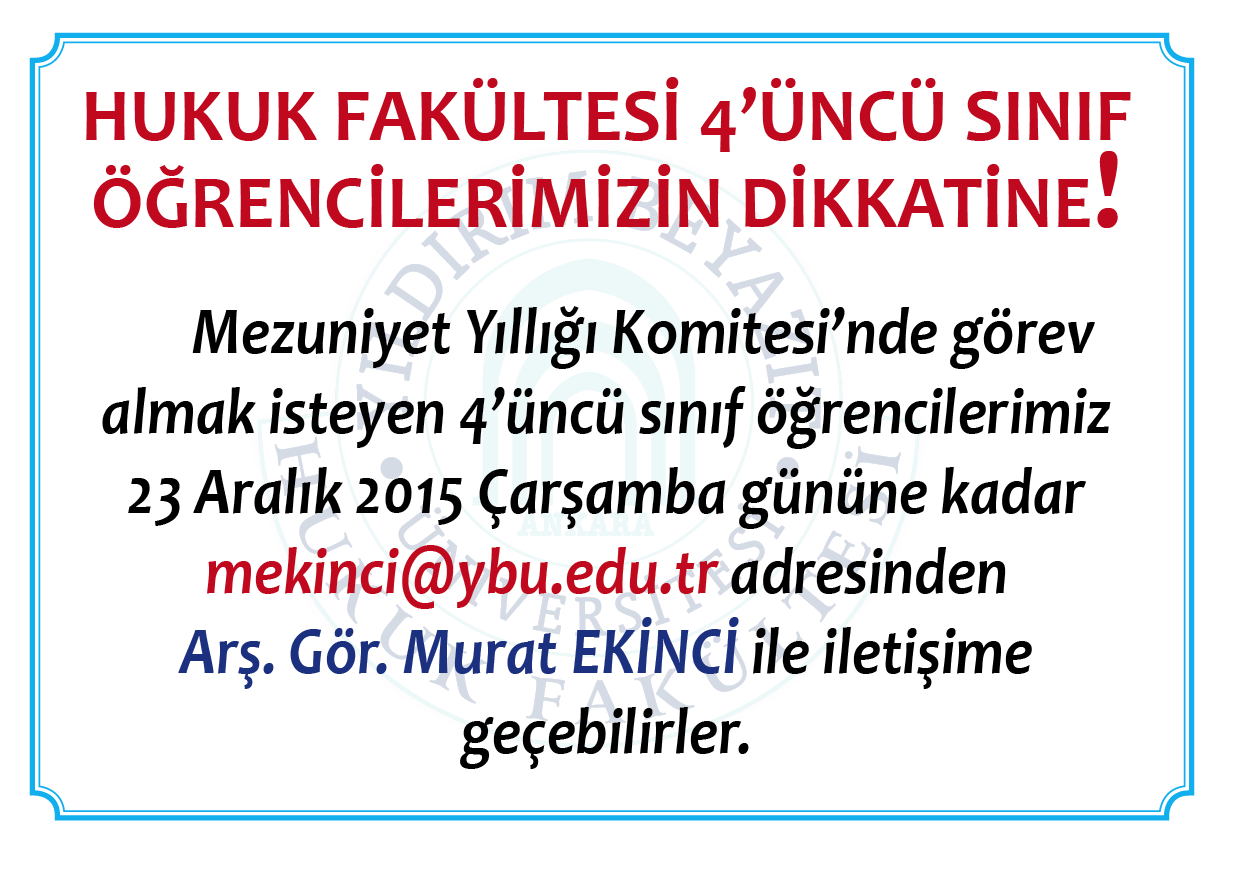 YBÜ Hukuk Fakültesi 4. Sınıf Öğrencilerin Dikkatine!