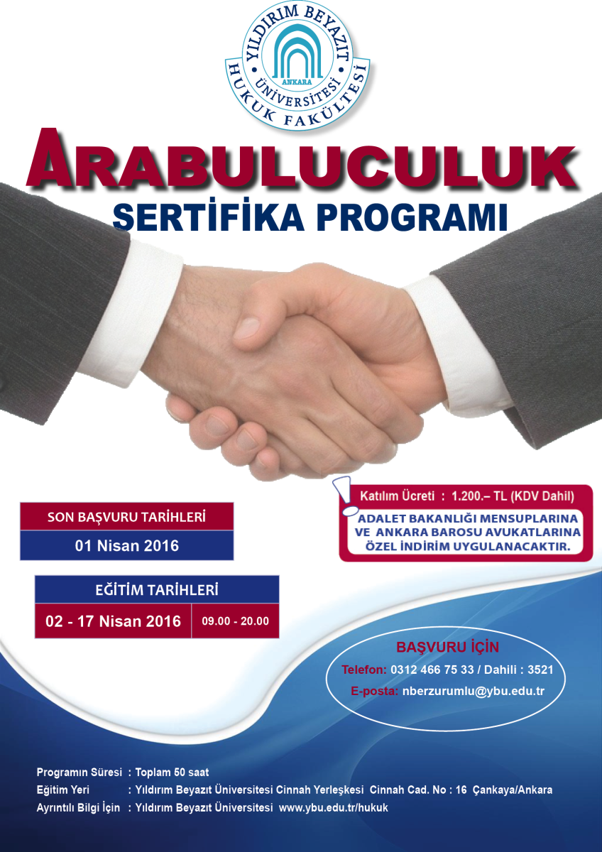 Hukuk Uyuşmazlıkları Arabulucuk Sertifika Programı 02 Nisan 2016 Tarihinde Başlıyor!