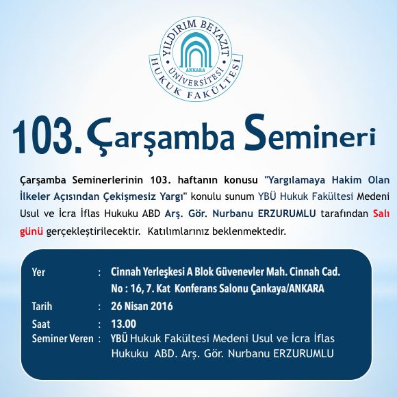 YBÜ Hukuk Fakültesi Çarşamba Semineri 103–Yargılamaya Hakim Olan İlkeler Açısından Çekişmesiz Yargı