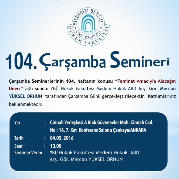 YBÜ Hukuk Fakültesi Çarşamba Semineri 104–Teminat Amacıyla Alacağın Devri