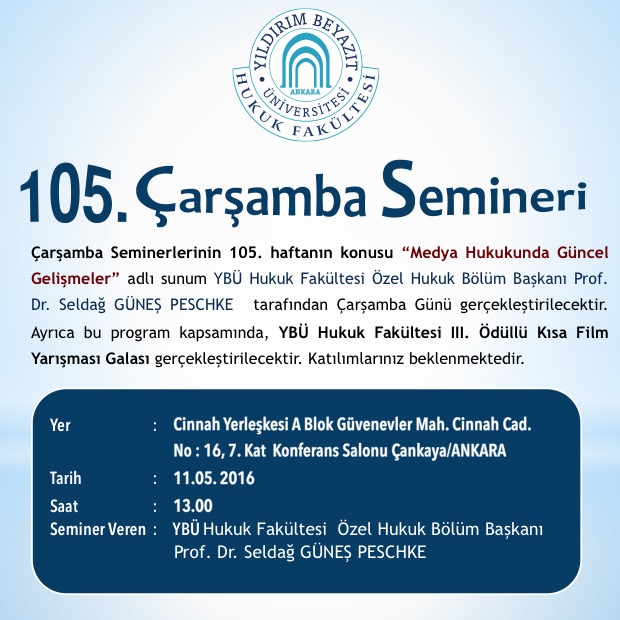 YBÜ Hukuk Fakültesi Çarşamba Semineri 105–Medya Hukukunda Güncel Gelişmeler (YBÜ Hukuk Fakültesi 3. Film Yarışması Galası)