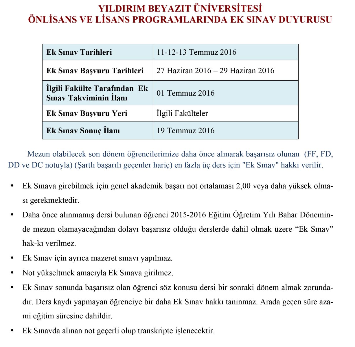 Ek Sınav Duyurusu