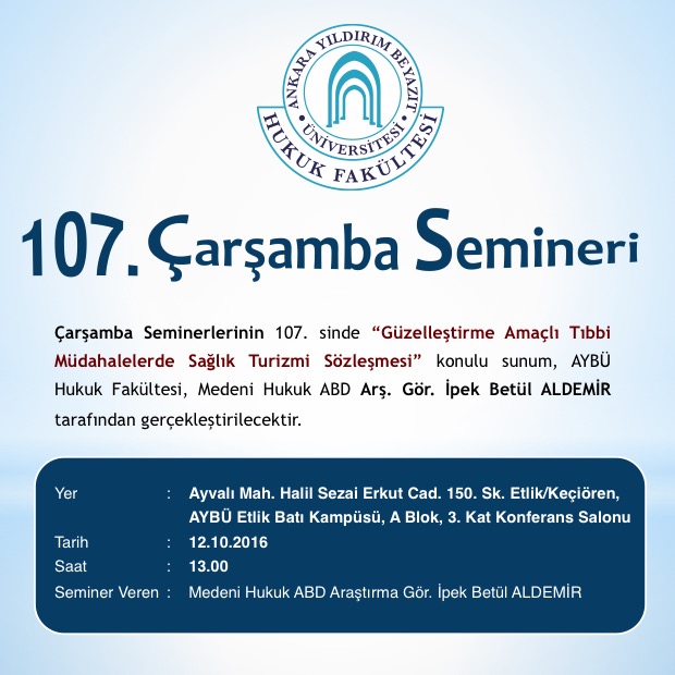 AYBÜ Hukuk Fakültesi Çarşamba Semineri 107–Güzelleştirme Amaçlı Tıbbi Müdahalelerde Sağlık Turizmi Sözleşmesi