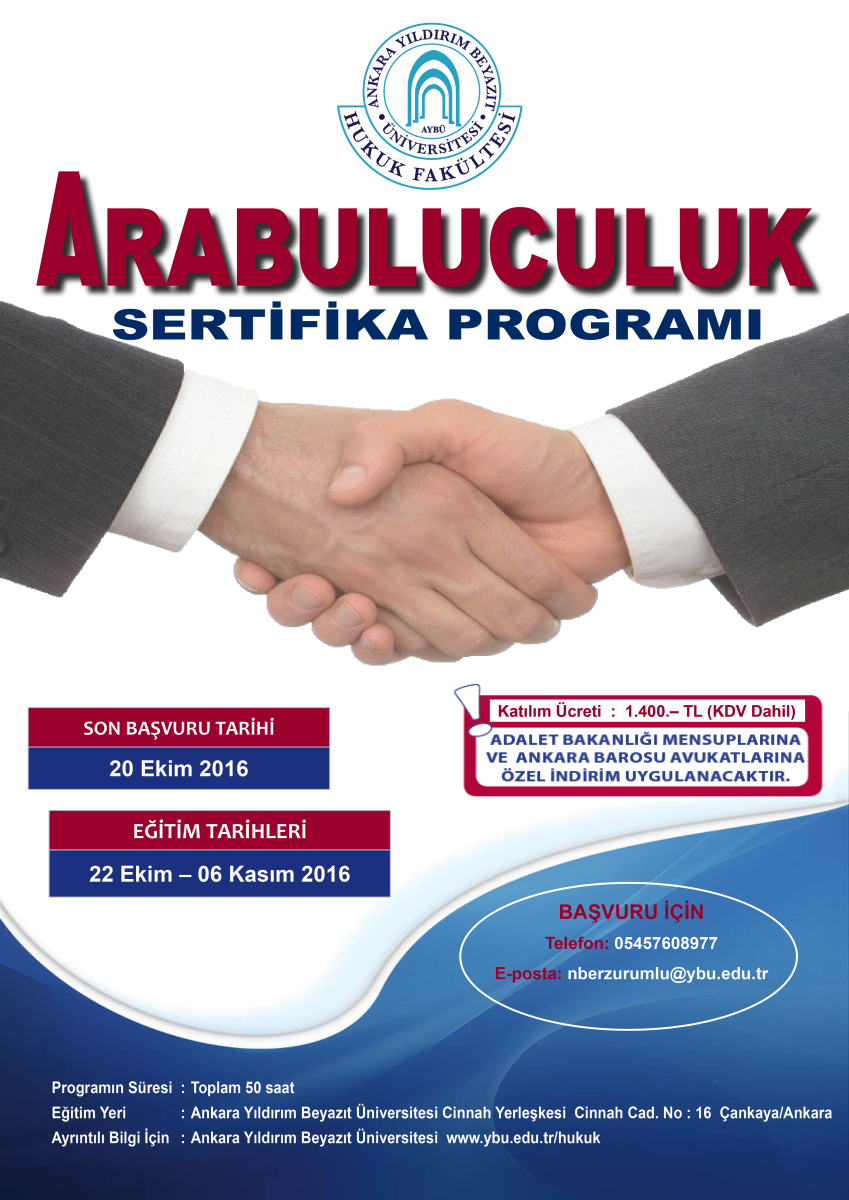 AYBÜ Hukuk Fakültesi Arabuluculuk Eğitimi 22 Ekim 2016 Tarihinde Başlıyor.