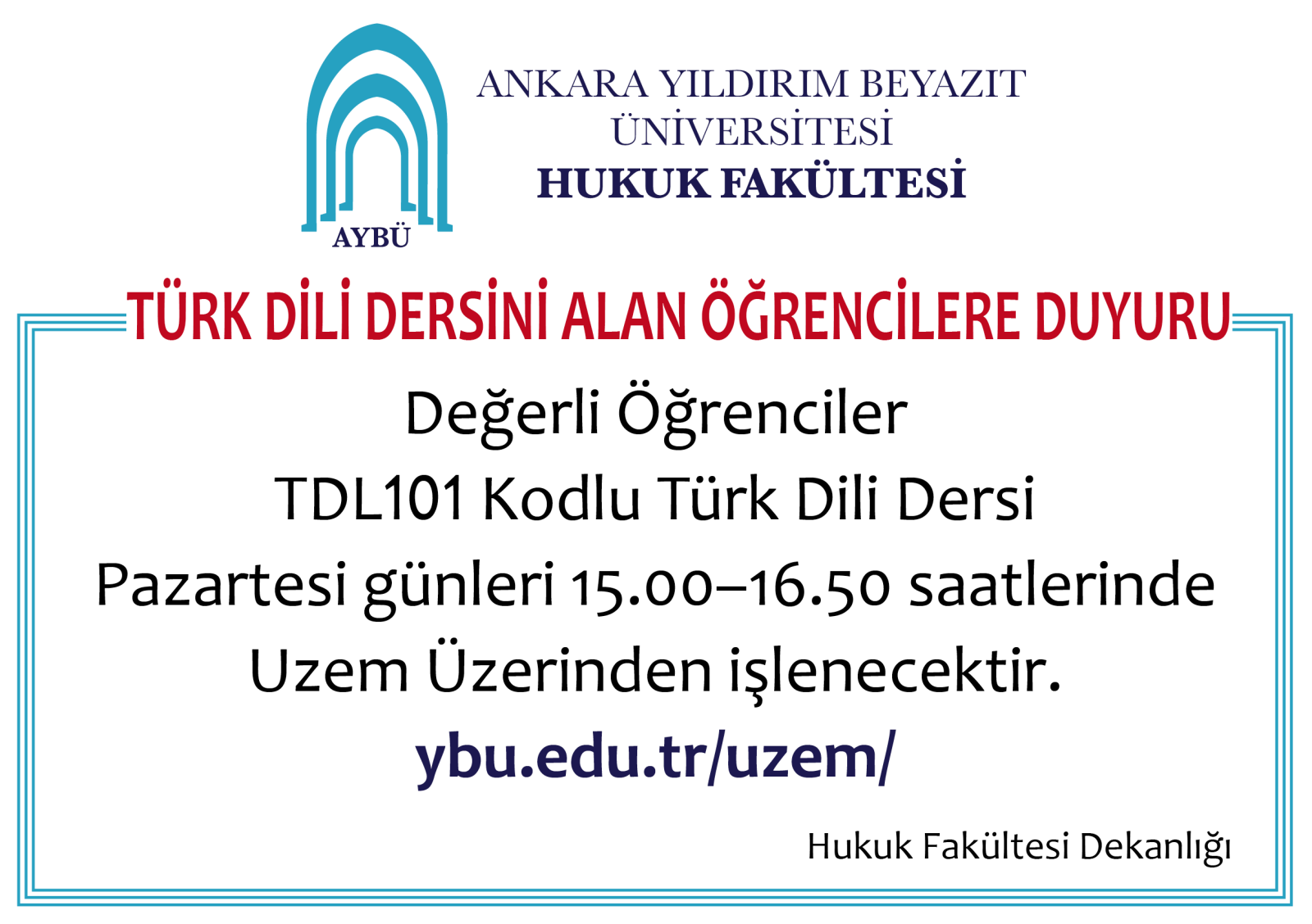 Türk Dili Dersini Alan Öğrencilere Duyuru