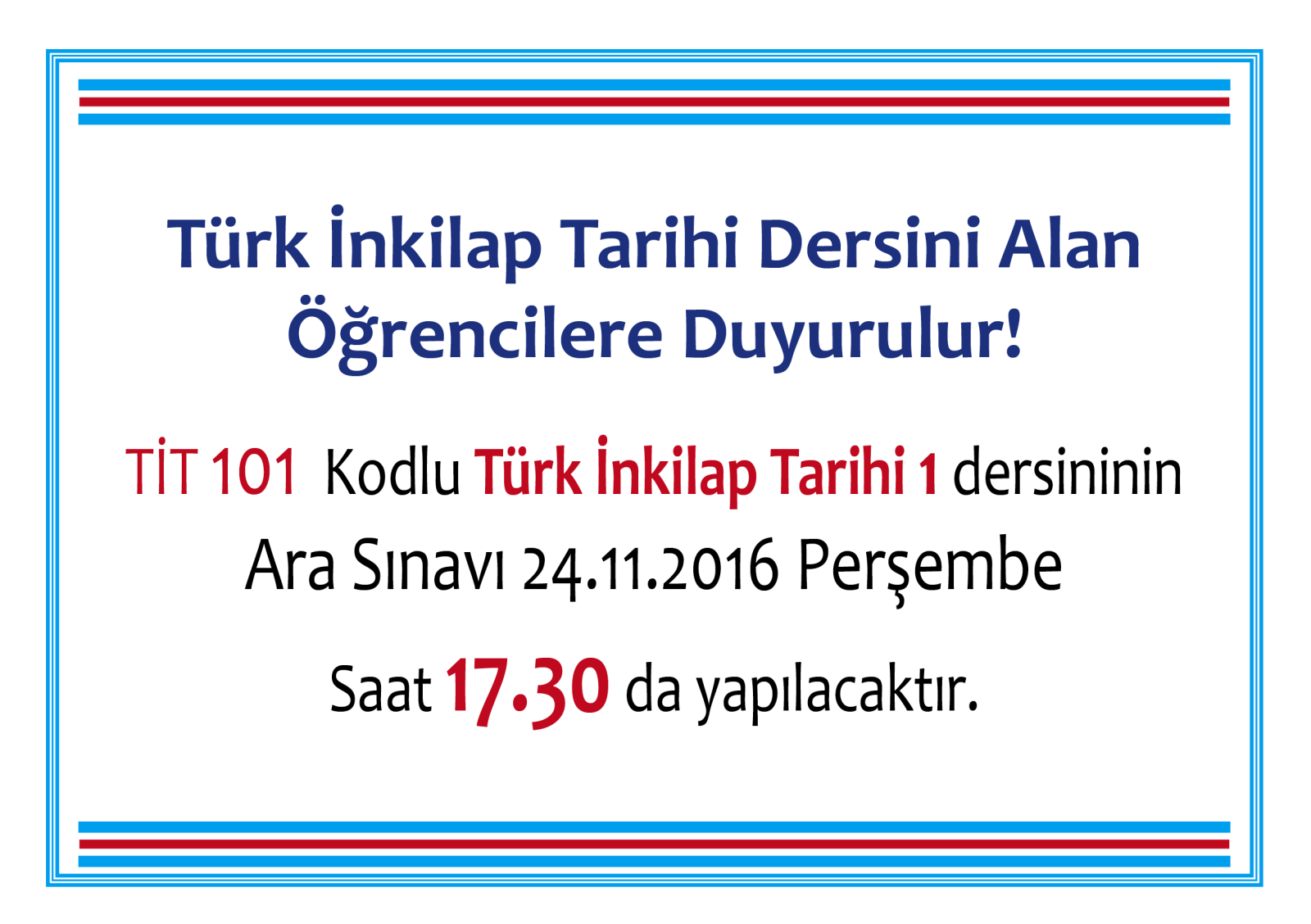 Türk İnkilap Tarihi Dersini Alan Öğrencilere Duyurulur.